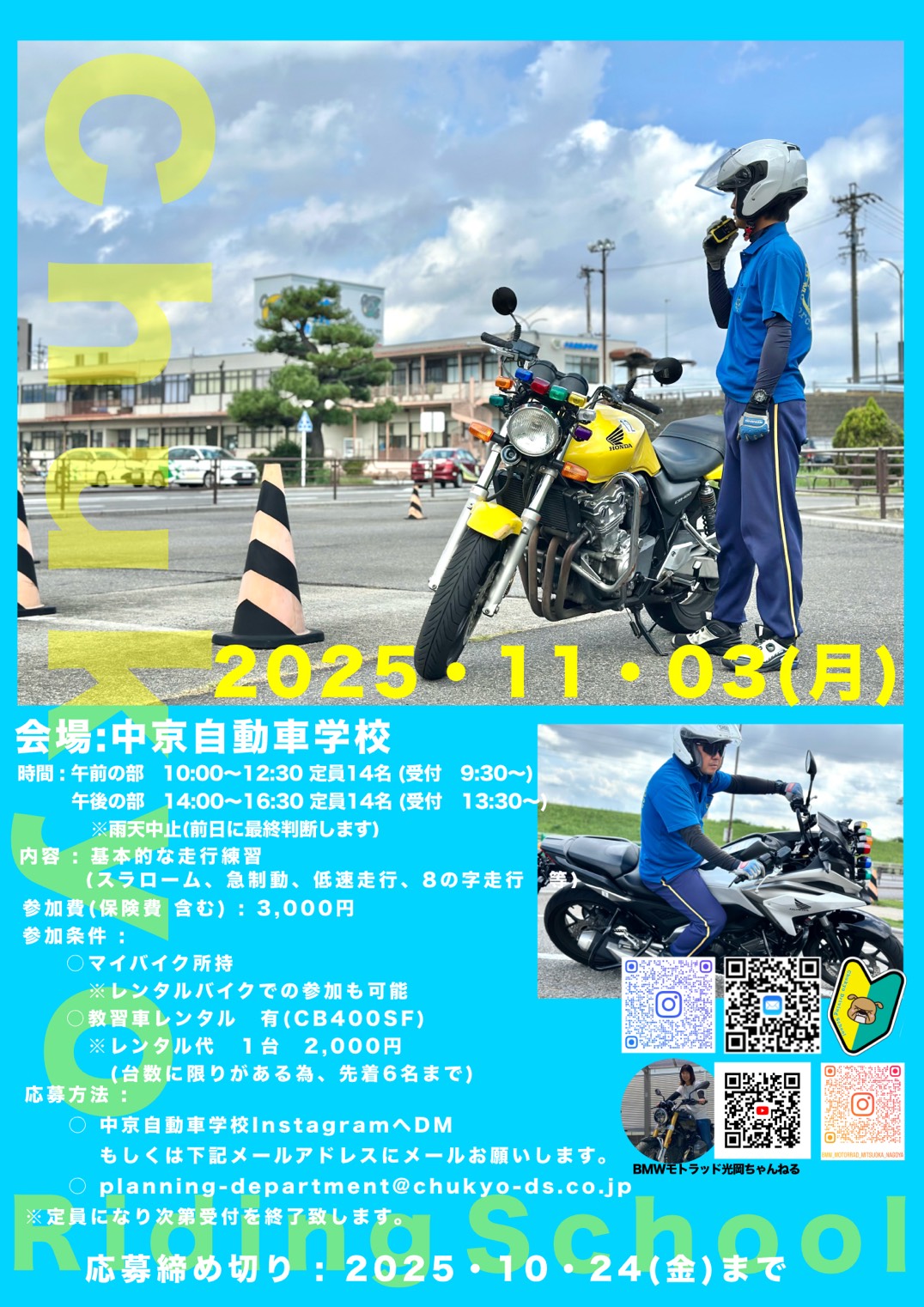 参加希望の方は、中京自動車学校InstagramのDMまたは、planning-department@chukyo-ds.co.jpにて