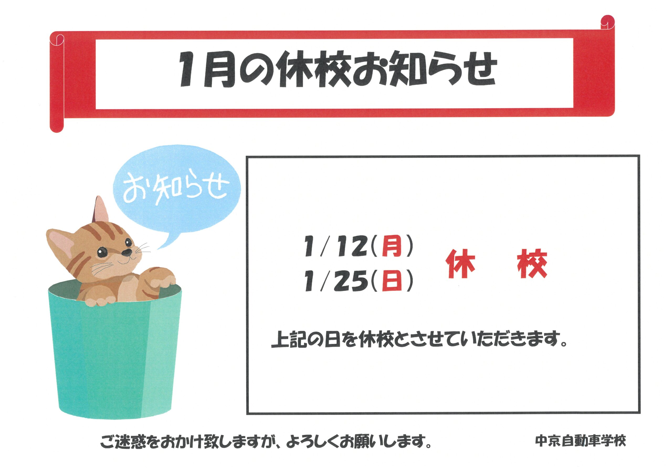 12月28日より1月5日の8日間、休校させていただきます。1月5日 9時30分より営業となります。